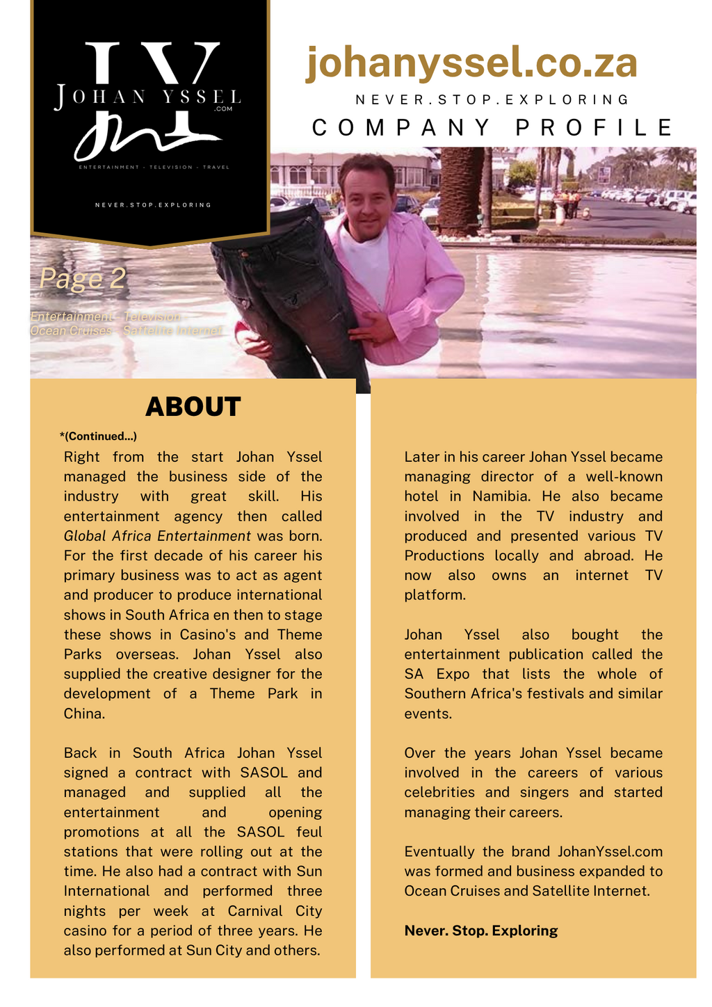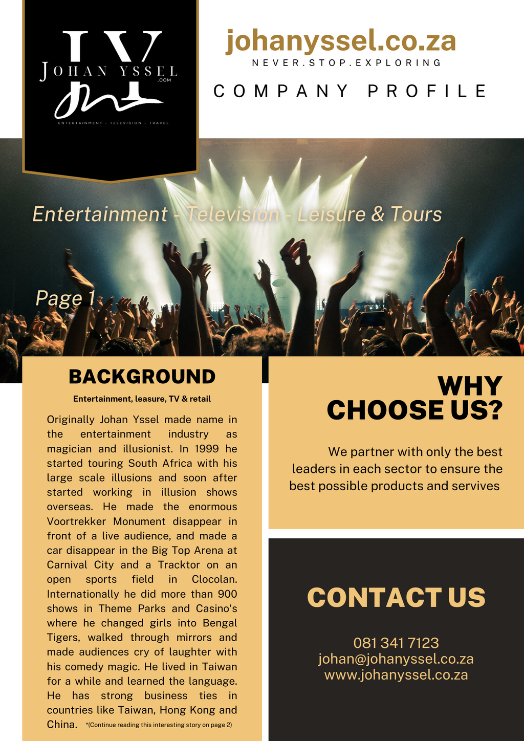 Grand Illusion. Vanishing Cars. Disappearing Voortrekker Monument. Appearing Boat. TV Producer. International Entertainment Agent. Master Of Ceremonies. Music Promotor. Festival Organiser. Music Concert Promotor. Farmer. Friend. Pilot. Husband. Father. He's Done It All.